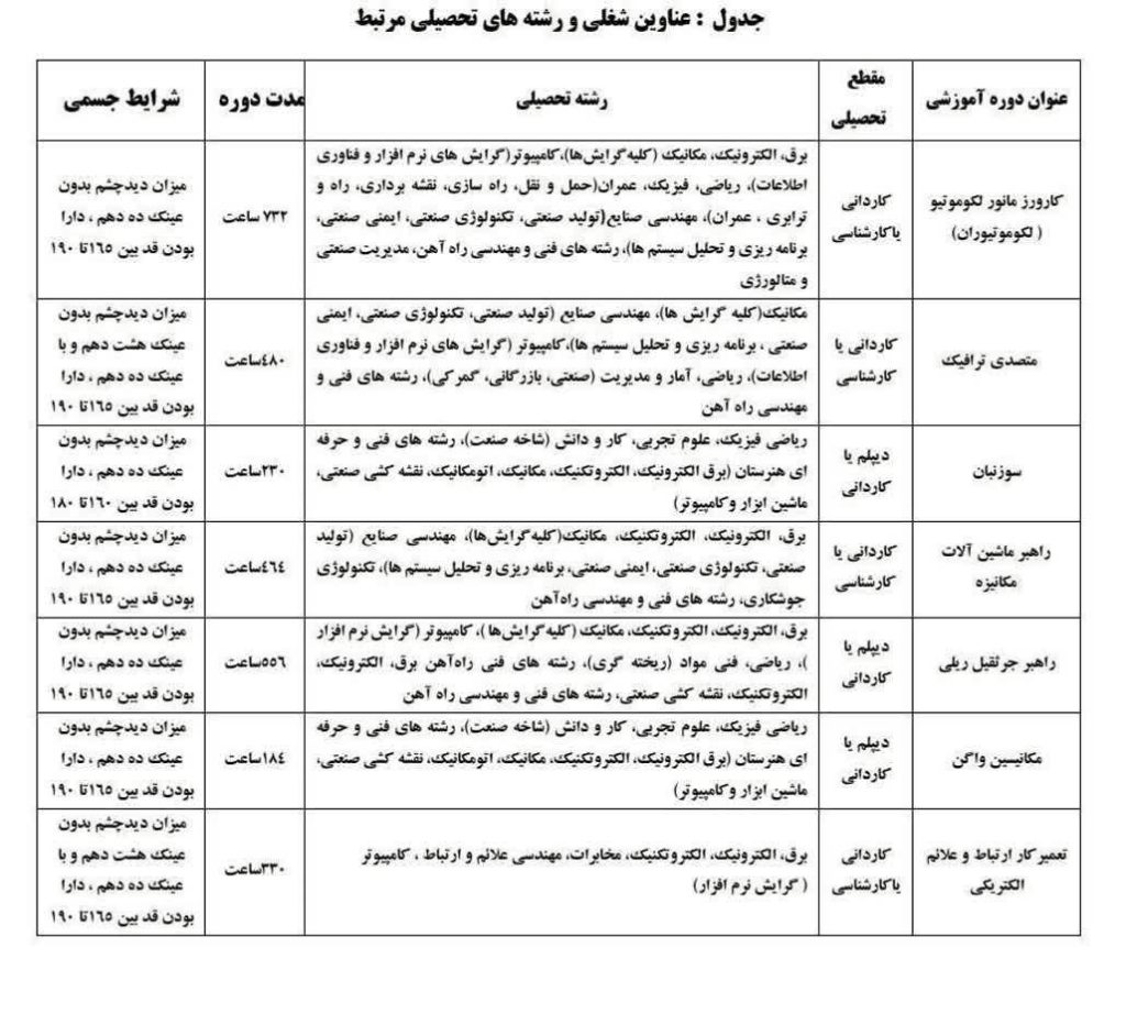 3.برگزاری دورههای تخصصی آموزش کار با لوکوموتیو، مبانی سیر و حرکت ویژه کارشناسان راهآهن.